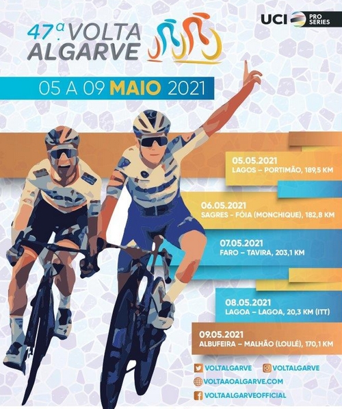 A 47ª edição da Volta ao Algarve vai disputar-se de 5 a 9 de maio, com as melhores equipas e as maiores estrelas do ciclismo internacional que irão percorrer as estradas algarvias ao longo de 765,8 quilómetros, distribuídos por cinco etapas: dia 5 – Lagos/Portimão (189,5 km); dia 6 – Sagres/Fóia (182,8 Km); dia 7 - Faro/Tavira (203,1 Km); dia 8 – Lagoa/Lagoa (20,3 Km); dia 9 – Albufeira/Malhão (170,1 Km).