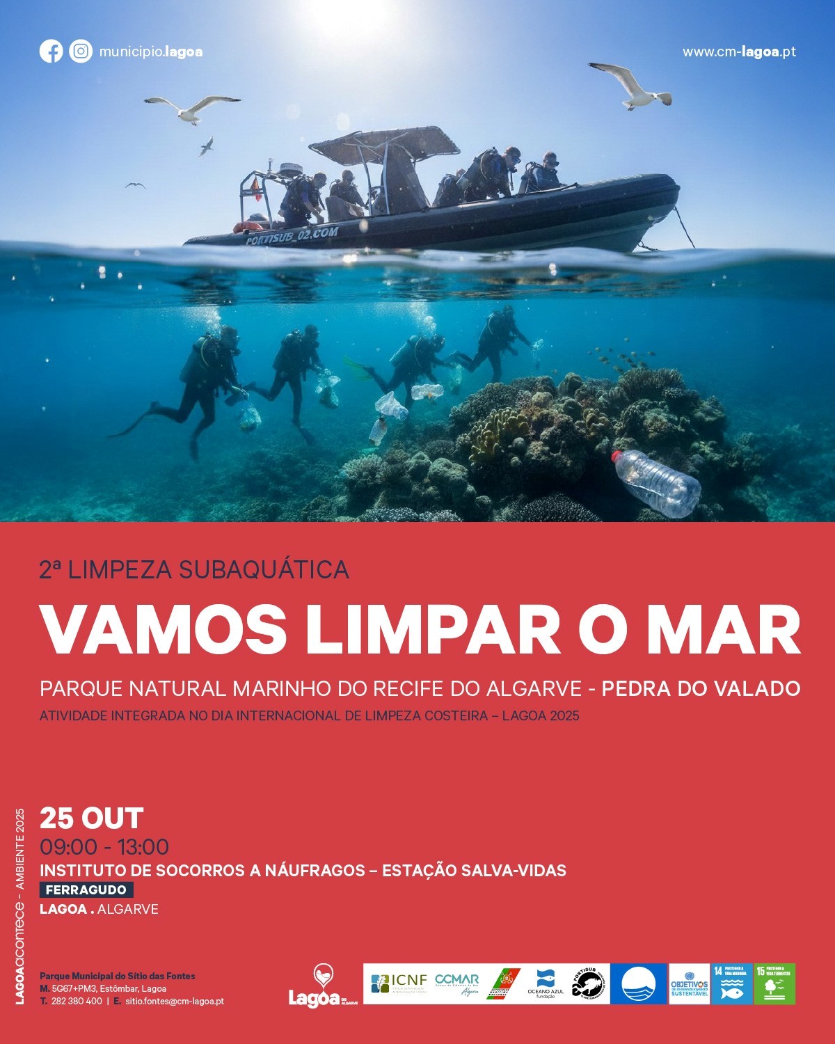No âmbito desta mobilização, será realizada a 2ª Limpeza Subaquática no Parque Natural Marinho do Recife do Algarve – Pedra do Valado, na manhã do dia 25 de outubro de 2025, entre as 09h00 e as 13h00. O ponto de encontro será na zona ribeirinha de Ferragudo.