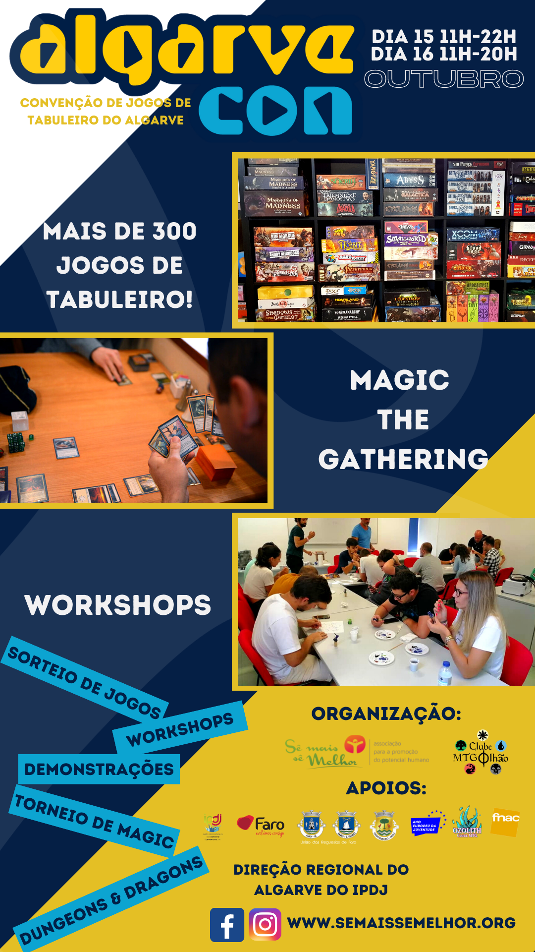 Pelo 4º ano consecutivo, a Associação Juvenil Sê Mais Sê Melhor e o Clube MTG de Olhão organizam a única convenção de jogos de tabuleiro que acontece ao sul do país.