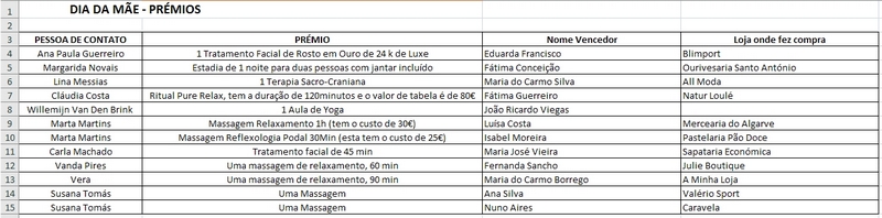 Já são conhecidos os 12 vencedores e respetivos prémios da ação de animação para o Dia da Mãe promovida pela ACRAL (ficheiro em anexo).