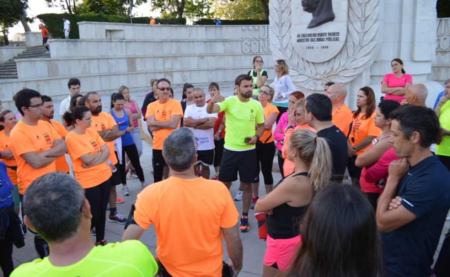 V.C. – Ainda bem que pergunta, porque muitas vezes as pessoas ainda não foram por não saberem ao que vão, ou porque querem andar e acham que é para correr, ou porque querem correr e acham que é para andar… Então, o programa começa às 20h00, como referi, no Monumento Duarte Pacheco. É ai que fazemos o aquecimento no início e os alongamentos no fim. Nos primeiros 10 ou 15 minutos eu faço um pequeno briefing sobre o percurso, sobre as normas de segurança, normas de conforto, assim como os cuidados a ter durante o percurso… Após esse briefing faz-se o aquecimento em conjunto. Todos. Depois tiramos uma fotografia de grupo e saem as pessoas que vão caminhar. Quem vai correr sai um pouco mais tarde, para que os dois grupos se encontrem durante o percurso, e também porque o aquecimento da corrida é um pouco mais longo. Depois, durante o percurso, cada um segue o caminho ao seu ritmo. Há pessoas que andam, há pessoas que correm, há pessoas que andam e correm... Por norma as pessoas formam grupos conforme os seus ritmos. A vantagem de tudo isto é que fazendo em conjunto a motivação é maior. E depois há também o compromisso, todos sabem que há terça lá estaremos. A chegada acontece um pouco a conta-gotas, primeiro os que correm, depois os que andam, conforme os ritmos de cada um. Eu sou dos primeiros a chegar, porque acompanho o grupo da corrida, mas sou sempre o último a ir embora, depois de confirmar que chegou toda a gente. No final há sempre água e chá, e por vezes bolos, fruta ou algo que alguém possa ter trazido, voluntariamente, para partilhar com o grupo.