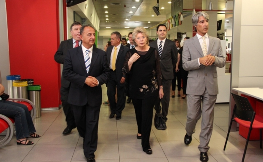 A comitiva seguiu para o Mercado Municipal de Faro onde outros representantes de entidades regionais esperavam a Vice-Presidente da Comissão Europeia para a visita formal às quatro gerações dos projetos financiados por fundos comunitários europeu neste edifício. Passaram pela Loja do Cidadão, um projeto de inovação e eficiência, inaugurado em Abril de 2009, e financiado no âmbito do PROALGARVE – QCA III, com um investimento realizado de 1.870.611€ e um FEDER associado de 1.234.603€. Esta Loja integra a 2.ª Geração deste serviço e concentra no mesmo espaço serviços públicos (da administração central e local) e serviços privados conexos, em função da procura e das necessidades existentes no local. De realçar que a Loja do Cidadão encontra-se instalada no piso superior do edifício do Mercado Municipal de Faro, mercado este também reestruturado com o apoio do PROALGARVE – QCA III, com um investimento executado de 12.659.360€ e um apoio FEDER de 4.747.260€.