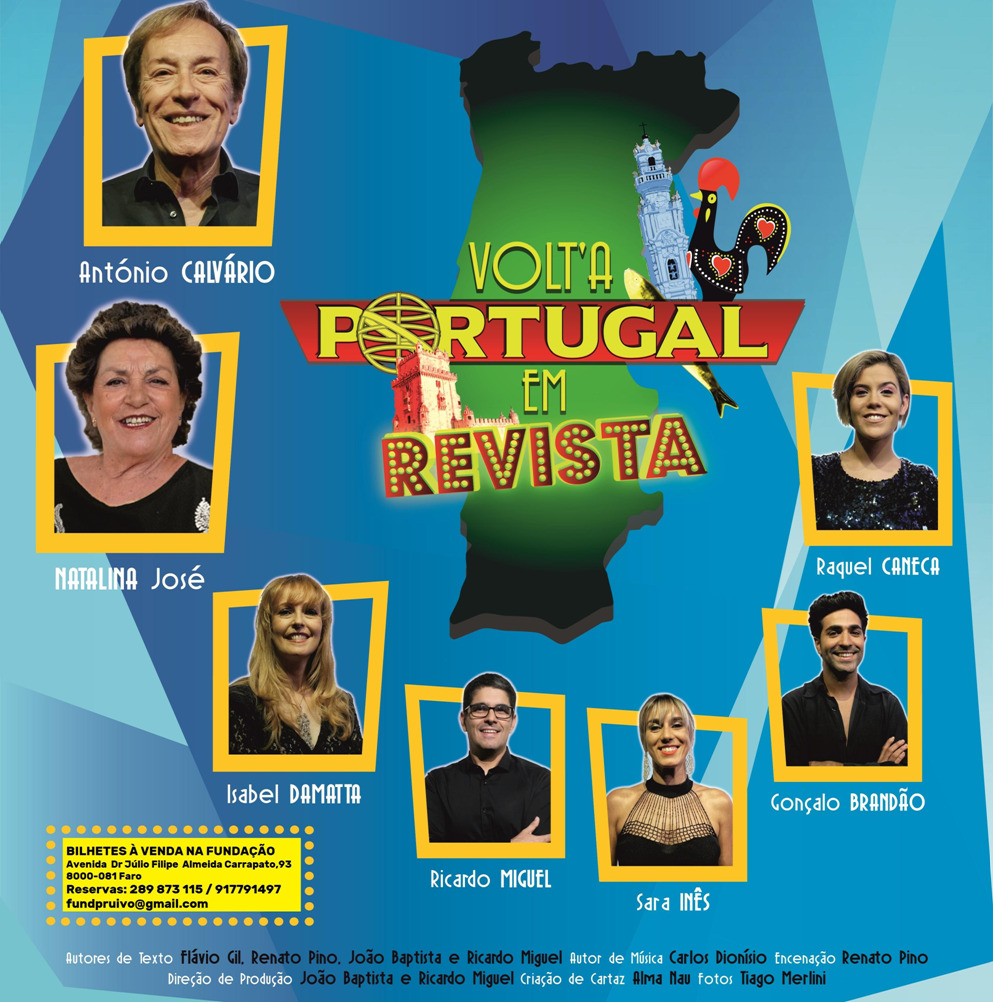«VOLTA PORTUGAL EM REVISTA»é uma aposta no regresso aos palcos de António Calvário, ícone maior da música popular portuguesa, e Natalina José, nome sonante do Parque Mayer. A seu lado, um jovem e talentoso elenco que dá vida a personagens de crítica social e política, em constante atualidade.
