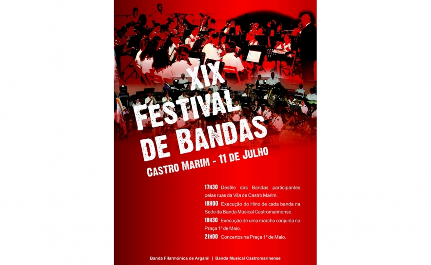 O XIX Festival de Bandas, que tem os apoios da Câmara Municipal e da Junta de Freguesia de Castro Marim, visa preservar a tradição secular das filarmónicas em Portugal e, ao mesmo tempo, incentivar o aparecimento de novos músicos.