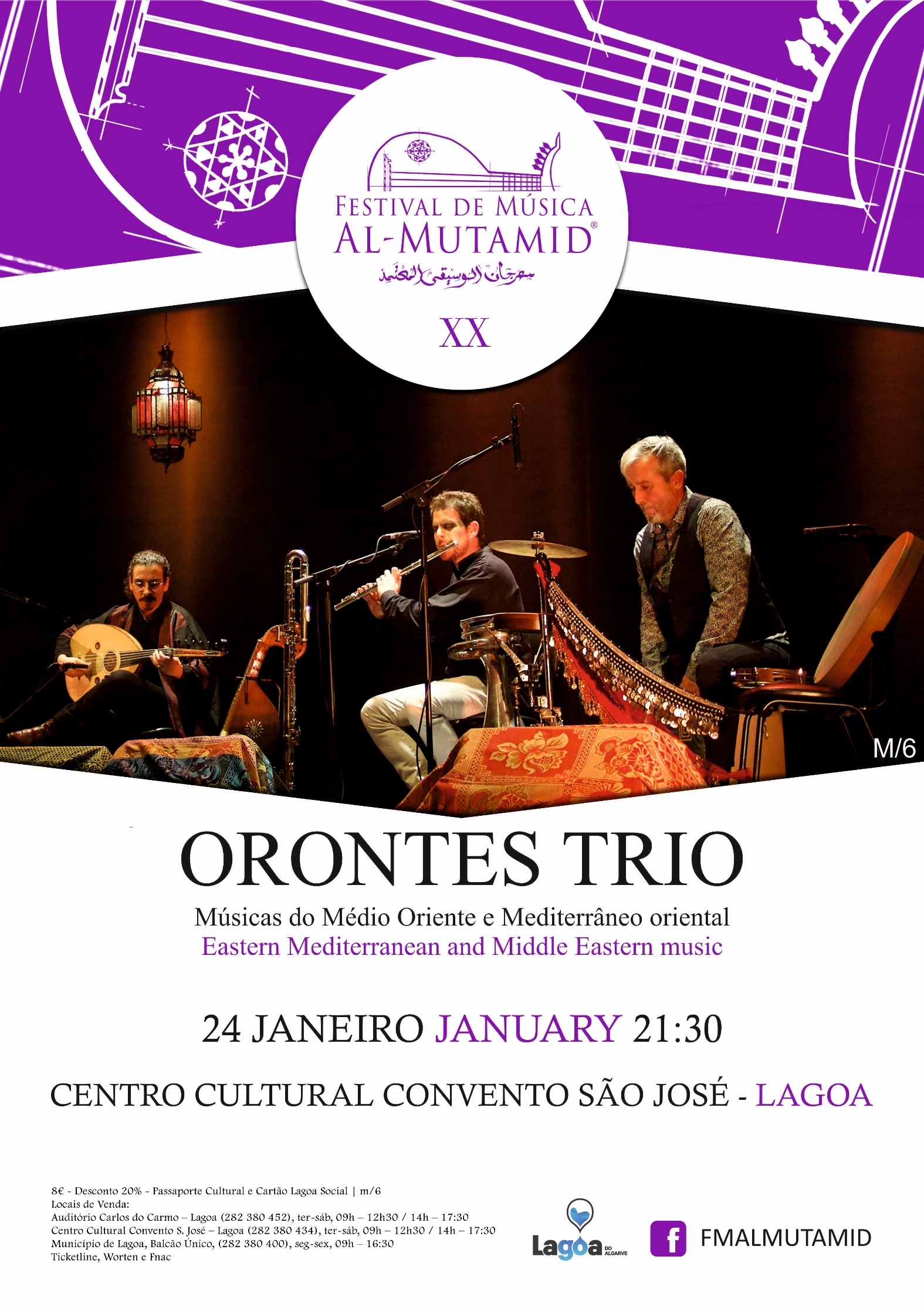 A 20ª edição do Festival de Música Al-Mutamid arranca dia 24 de janeiro com o grupo de música ORONTES TRIO no Centro Cultural - Convento de São José, em Lagoa.