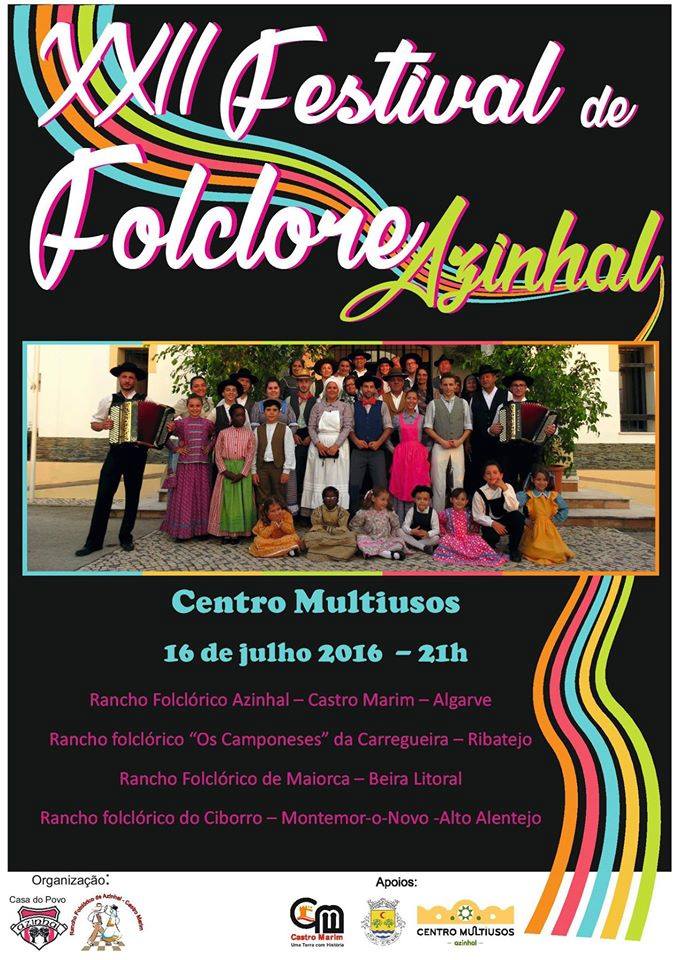 O XXII Festival de Folclore do Azinhal conta com os apoios do Município de Castro Marim, Junta de Freguesia e Centro Multiusos do Azinhal.
