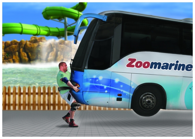 No novo passeio panorâmico do Zoomarine Beach, a última prova do dia consiste em puxar um autocarro de turismo, com cerca de 18 toneladas, numa distância de cerca de 20 metros, no menor tempo possível.