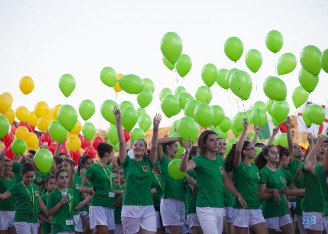 A inauguração do Campeonato do Mundo de Dança envolveu milhares de jovens “dançarinos” em representação de 38 países, que desfilaram pela pista de tartan e se perfilaram ocupando todo o relvado do campo.
