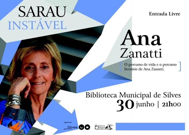 «O Percurso de Vida e o Percurso Literário de Ana Zanatti» são o tema do próximo Sarau Instável, que terá lugar no dia 30 de junho, pelas 21h00, na Biblioteca Municipal de Silves.