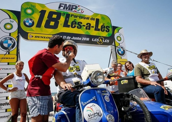 Aventura que começou há dois anos, com a preparação de side-car feito a partir de uma Vespa GTR 125. Primeira dificuldade, encontrar o side. «Um anúncio na internet» ajudou a superar o primeiro obstáculo, para logo fazer surgir outro. «O side-car era de um inglês e teria de ser montado do lado esquerdo», obrigando a repensar o projeto antes da enorme burocracia necessária à legalização. Engenheiro mecânico de formação, Filipe Nascimento não desanimou e enfrentou o complexo processo de homologação, disposto a estar presente à partida do 18.º Portugal de Lés. O que conseguiria, fazendo equipa com vários amigos do Vespa Clube do Algarve, em prova de enorme coragem, estilhaçando todos os preconceitos sempre com contagiante otimismo e boa disposição.