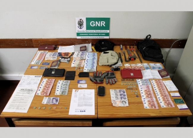 Após a interceção do suspeito verificou-se que transportava numa mochila diversas carteiras com documentação alheia, 1 411 euros e 230 libras esterlinas em numerário, objetos que se veio a confirmar terem sido subtraídos da referida residência.