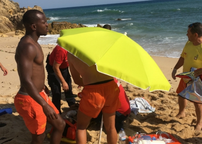 O indivíduo de 26 anos, português, foi retirado da água pelos nadadores-salvadores e, posteriormente, com o apoio do militar da Marinha, foi efetuado o suporte básico de vida até à chegada do Bombeiros Voluntários de Albufeira.