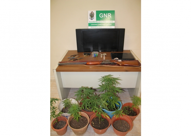 Foi ainda apreendida uma espingarda caçadeira e três armas brancas (duas facas borboleta e uma navalha), para além de diversas munições calibre 12 e .22, 1 televisor LCD e 1 computador portátil.