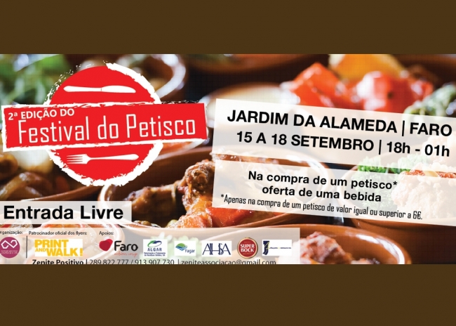 Faro recebe de 15 a 18 de setembro, das 18h à 01h, no Jardim da Alameda, em Faro, o Festival do Petisco 2016.