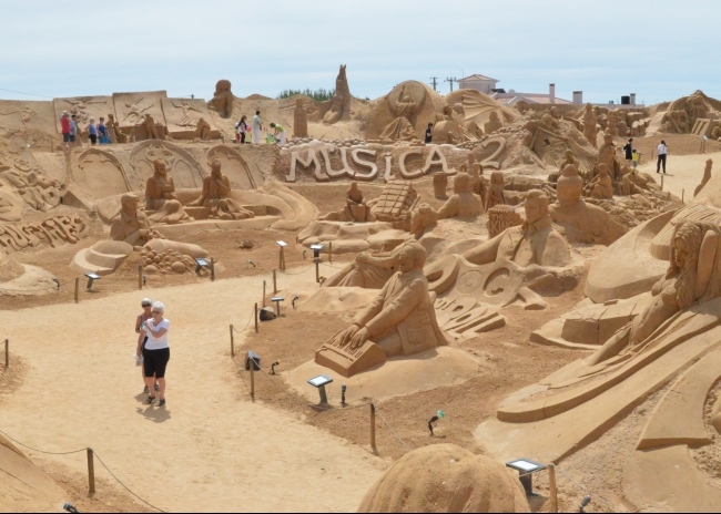 O FIESA, aberto até Outubro, tem recebido centenas de visitantes nesta 14ª edição e exibe um dos maiores conjuntos de esculturas em areia já alguma vez feito, em que 40 mil toneladas de areia foram transformadas em peças alusivas à Música.