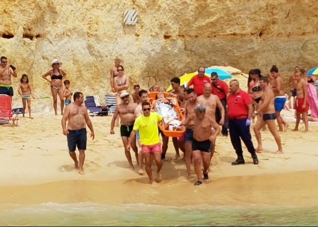 A vítima, uma mulher de nacionalidade francesa e 38 anos de idade, tinha ficado ferida no areal, com uma lesão na rótula. Foi transportada para a Estação Salva-vidas de Ferragudo, onde se encontrava uma ambulância do INEM, que a transportou para o Centro Hospitalar do Barlavento Algarvio.