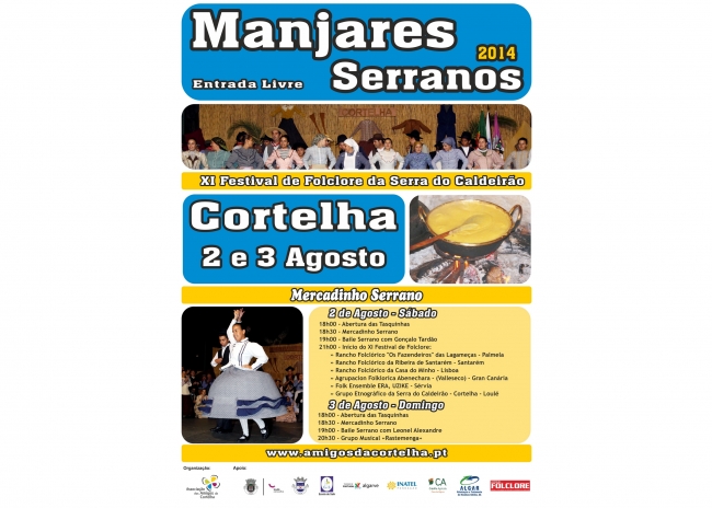 Dias 2 e 3 de Agosto é mais uma vez dia de festa na tradicional aldeia da Cortelha, localizada no interior do Concelho de Loulé. Depois do sucesso de anos anteriores, estão de regresso os Manjares Serranos, que revelam o melhor da cozinha serrana, acompanhados pelo Festival de Folclore da Serra do Caldeirão.