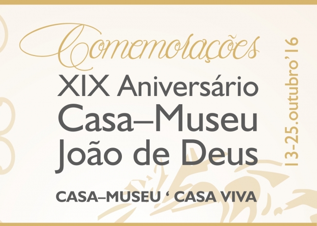 Entre os dias 13 e 25 de outubro a Casa-Museu João de Deus (CMJD), em SB Messines, assinala o seu 19.º aniversário, com a dinamização de um programa especial de atividades denominado «Casa Museu – Casa Viva», que se realizarão dentro e fora deste equipamento.
