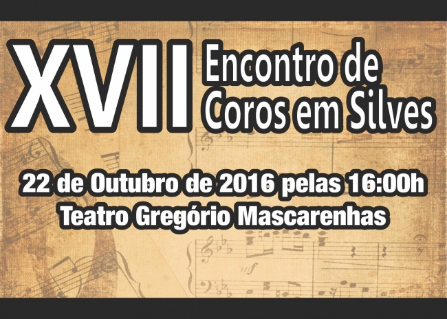 O XVII Encontro de Coros de Silves, organizado pela Sociedade Filarmónica Silvense, terá lugar no próximo dia 22 de outubro, pelas 16h00, no Teatro Gregório Mascarenhas.