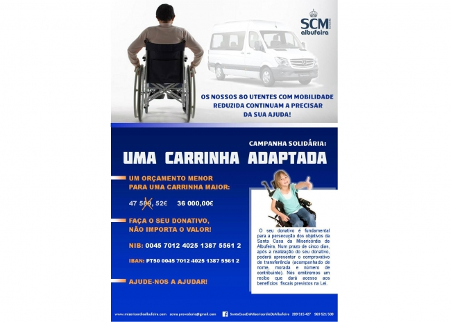 A campanha “Uma Carrinha Adaptada” pretende angariar fundos para aquisição da primeira viatura adaptada da Santa Casa da Misericórdia de Albufeira (SCMA).