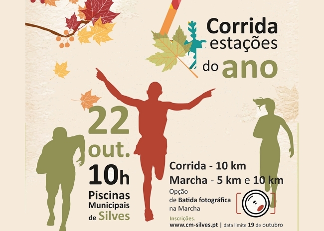 No próximo sábado, dia 22 de outubro, a «Corrida das 4 estações» terá a sua edição de Outono. A partida para esta prova será dada nas Piscinas Municipais de Silves (que também será o local de chegada), às 10h00.