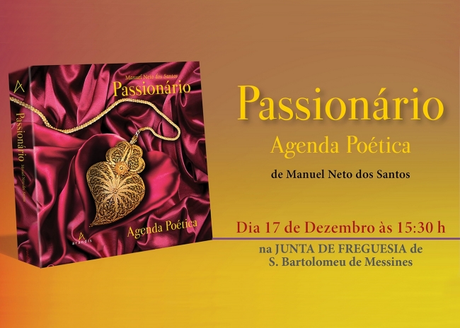 A fechar o ano de 2016, apresentará, no próximo dia 17 de dezembro, pelas 15:30 horas, no edifício da Junta de Freguesia de São Bartolomeu de Messines, a sua mais recente criação poética: “Passionário”.