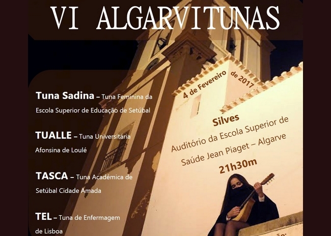 A VI Algarvitunas - Encontro de Tunas da Escola Superior de Saúde Jean Piaget Algarve terá lugar no próximo dia 4 de fevereiro, pelas 21h30, no Auditório da Escola Superior de Saúde, em Silves. O evento, organizado pela XelbTuna - Tuna Mista da Escola Superior de Saúde Jean Piaget – Algarve, conta com o apoio da Câmara Municipal de Silves.