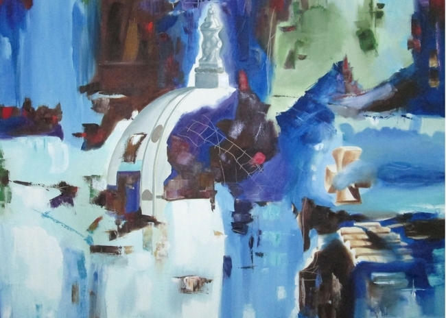 Marisa Patrício, atraída pelas grandes linhas arquitetónicas da cidade, procura transportar para a tela o lado romanesco, tradicional e pitoresco duma cidade visionada e interpretada por si em cada traço desenhado.