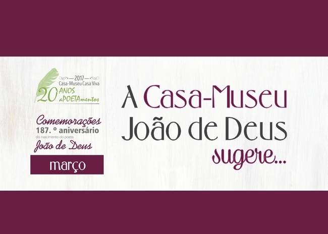 Em mês de aniversário de João de Deus, a Casa-Museu João de Deus (CMJD), em SB Messines irá dinamizar um vasto leque de iniciativas culturais em torno do poeta e pedagogo. Oficinas, uma exposição, o habitual ciclo de memórias, poesia e uma palestra dedicada à educação são algumas das propostas deste espaço.