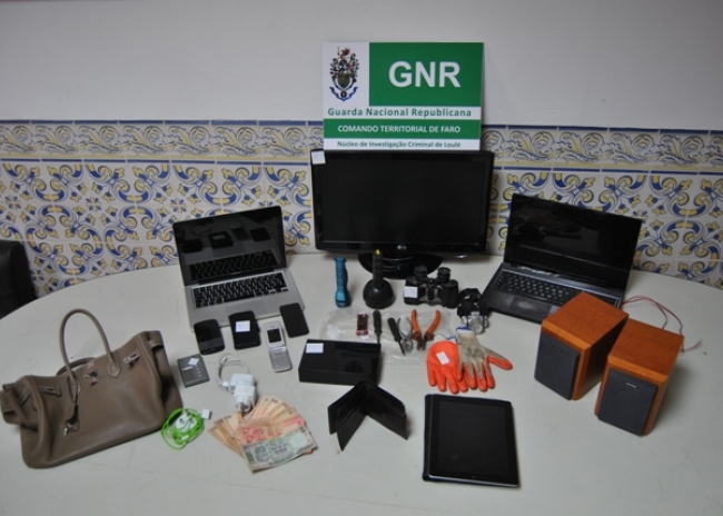 Nessa sequência foi efetuada busca à residência onde este pernoitava, tendo sido recuperados diversos objetos que haviam sido furtados no próprio dia e em dia anterior de duas residências localizadas na zona de Vale do Garrão e Quinta do Lago, nomeadamente 02 telemóveis, 02 computadores portáteis, 02 Iphones, 01 Ipad, 01 LCD, 01 disco externo, 01 par de colunas de som e 01 mala de senhora de marca reconhecida e avaliada em vários milhares de euros, todos os objetos no valor estimado de € 12000.