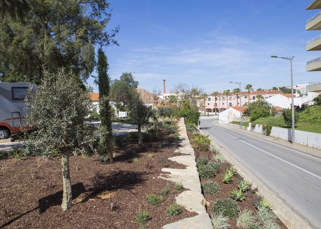 Para além do reforço dos muros de suporte em pedra da bordeira e o acesso rampeado em calçada branca, este espaço ajardinado passou a contar com bancos, rodeados de relva e uma zona para a prática da Petanca, em pó de pedra com delimitação em lancil de calcário, tudo enquadrado por novas árvores (oliveiras e plátanos) e outros arbustos e herbáceas, que ajudarão a amenizar os dias de calor.