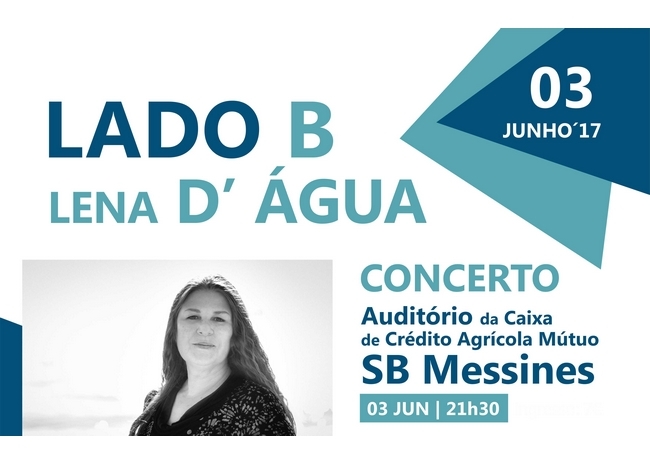 Lena d Água atuará no próximo dia 3 de junho pelas 21h30, em SB Messines. A iniciativa é promovida pela Câmara Municipal de Silves (CMS) no âmbito da rúbrica Lado B e terá lugar no auditório Francisco Vargas Mogo (Crédito Agrícola).