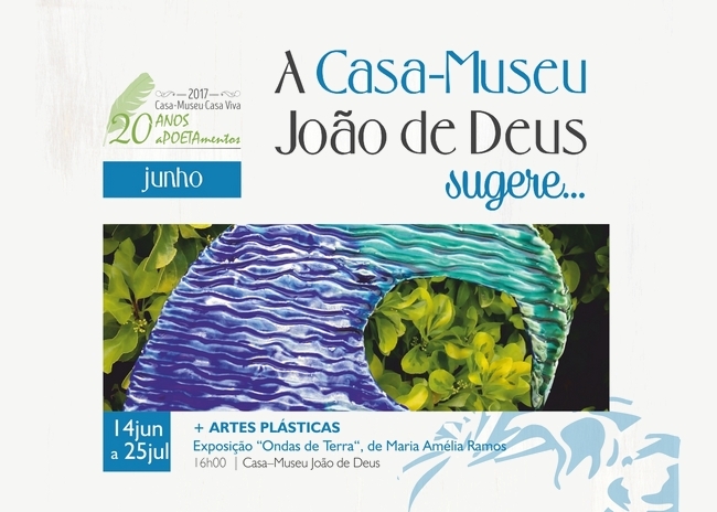 As artes plásticas estarão, também, em destaque nesta programação com a exposição “Ondas de Terra”, de Maria Amélia Ramos, patente na Casa Museu-João de Deus de 14 de junho a 25 de julho. A mostra inaugura dia 14 de junho, pelas 16h00.