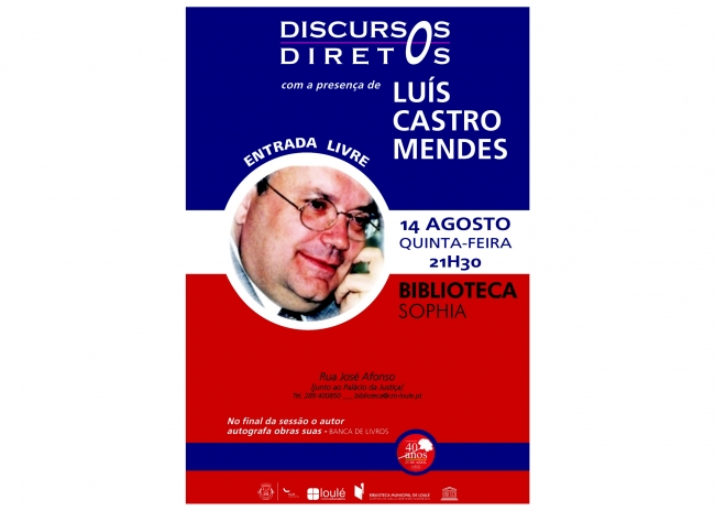 No próximo dia 14 de agosto, pelas 21h00, a Biblioteca Sophia recebe, em Loulé, uma das mais proeminentes figuras da poesia nacional da atualidade. Luís Castro Mendes, Embaixador de Portugal junto do Conselho da Europa (Estrasburgo). Com longa e ímpar carreira literária, pela primeira vez está em Loulé, terra onde tem fortes raízes familiares, para falar da sua obra poética. Luís Castro Mendes é apresentado pela Escritora Lídia Jorge.