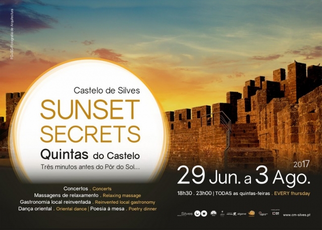 Os Sunset Secrets – Quintas do Castelo começam no próximo dia 29 de junho e terminarão no dia 03 de agosto. Esta iniciativa da Câmara Municipal de Silves, que tem lugar pelo quarto ano consecutivo, decorrerá às quintas-feiras, entre as 18h30 e as 23h00, no Castelo de Silves.