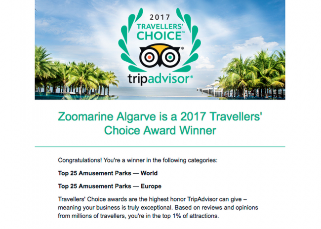 Esta distinção, que se junta a várias outras (em áreas genéricas, como o Turismo, e específicas, como o bem-estar animal), não é nova: o Zoomarine, sistematicamente, têm integrado, nos últimos 5 anos, a lista dos 10 melhores parques europeus; mas numa área tão vital para Portugal, como é o caso do Turismo, é a primeira vez que Portugal se pode orgulhar de ter uma entidade que integra esta lista dos 25 melhores em todo o mundo.