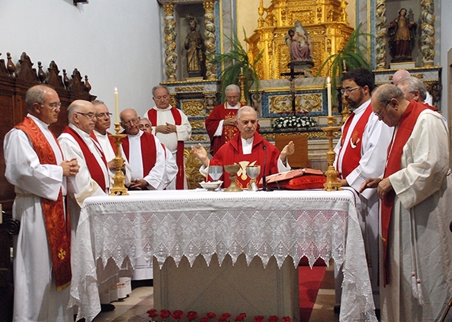 A eucaristia, no dia em que a Igreja celebrava a solenidade de São Pedro e São Paulo, prosseguiu com a oferta das suas comunidades do paramento – casula e estola – com que o sacerdote presidiu ao resto da celebração. “Obrigado a todos. Vou presidir à eucaristia, recordando a vossa generosidade e também todas as vossas intenções”, agradeceu o prior que também no Algarve já foi pároco de Ferragudo, Aljezur, Odeceixe e Pêra e vigário paroquial do vicariato da Pedra Mourinha, em Portimão.