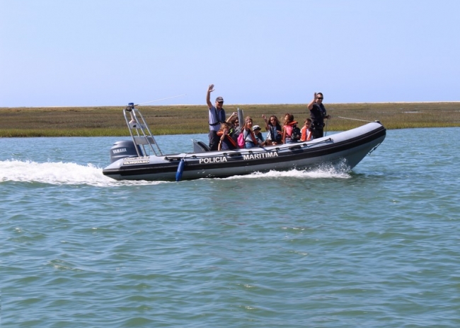 Após esta ação, os participantes embarcaram numa lancha da Polícia Marítima, sendo-lhes proporcionada uma experiência prática de navegação na Ria Formosa.