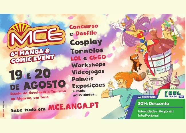 A Associação Núcleo de Geeks do Algarve apresenta a 6.ª Edição do Manga and Comic Event (MCE), que decorrerá nos dias 19 e 20 de Agosto, entre as 10:00 e as 20:00, na Escola de Hotelaria e Turismo do Algarve, em Faro.