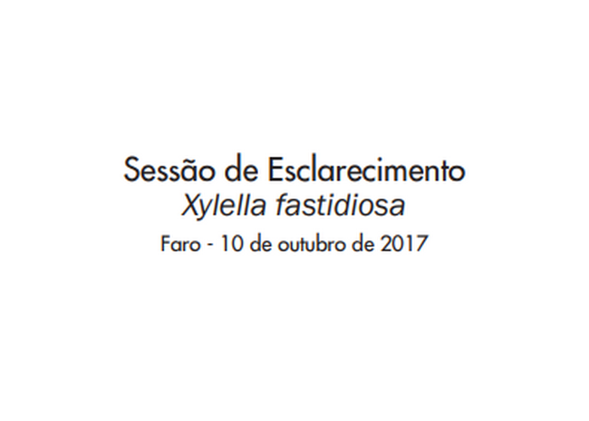 A Direção Geral de Alimentação e Veterinária (DGAV) em colaboração com a Direção Regional de Agricultura e Pescas do Algarve (DRAP Algarve) irão realizar uma Sessão de Esclarecimento sobre a Xylella fastidiosa no próximo dia 10 de outubro no Auditório da DRAP Algarve, em Faro - Patacão.