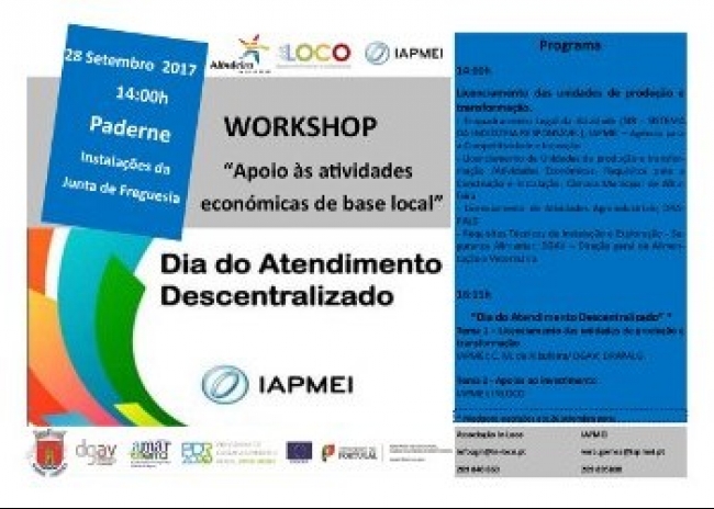 No próximo dia 28 de setembro (quinta-feira) realiza-se em Paderne o workshop «Apoio às Atividades Económicas de Base Local».
