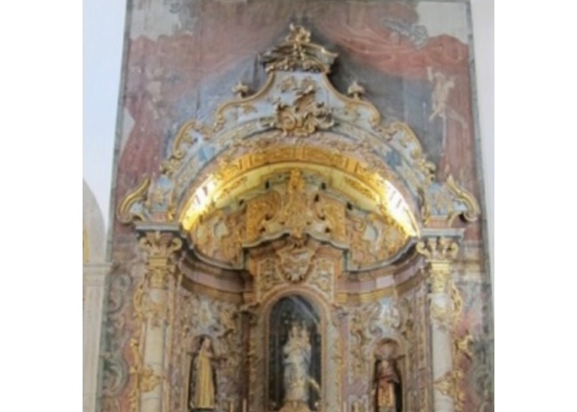 Esta tela pintada denominada “Boca de Cena” e que emoldura o Altar é considerada Património Integrado do Monumento de Interesse Público, Igreja Matriz de São Pedro de Faro.