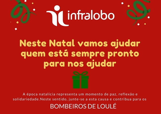 A época natalícia representa um momento de união, paz, reflexão e solidariedade. Neste sentido, e depois dos violentos incêndios que devastaram o nosso país, a Infralobo E.M. tomou a iniciativa de desenvolver uma campanha solidária de Natal com a finalidade de ajudar e agradecer aos Bombeiros de Loulé.