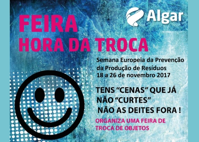 A ALGAR, empresa responsável pela valorização e tratamento de resíduos sólidos no Algarve, associa-se a esta iniciativa desde sempre. Este ano a empresa incentiva as Escolas da região a organizarem feiras de troca de objetos, que poderão intitular-se “Hora da Troca”. O objetivo é promover a troca direta de objetos tais como CD’s, livros, brinquedos ou outros materiais, que ainda estão em condições de serem utilizados por outras pessoas. Esta ação visa sobretudo, aumentar o ciclo de vida útil dos objetos e alertar os alunos para a importância de evitar o desperdício dos materiais, contribuindo dessa forma para a redução da deposição dos resíduos em aterro.