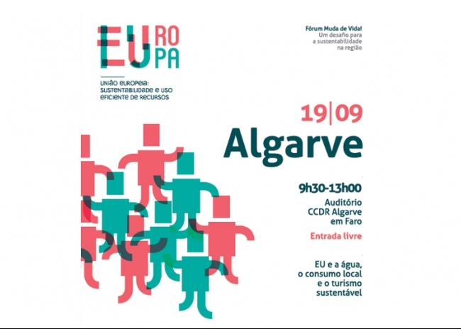 Neste âmbito, no próximo dia 19 de setembro, entre as 9h30 e as 13h00, a Comissão de Coordenação e Desenvolvimento Regional do Algarve vai acolher o “Fórum Muda de Vida”, subordinado aos temas “Eu e a água, Eu e o consumo local, Eu e o turismo sustentável”. Prevê-se que o Encontro conte com a presença do Secretário de Estado das Florestas e Desenvolvimento Rural, Francisco Gomes da Silva.