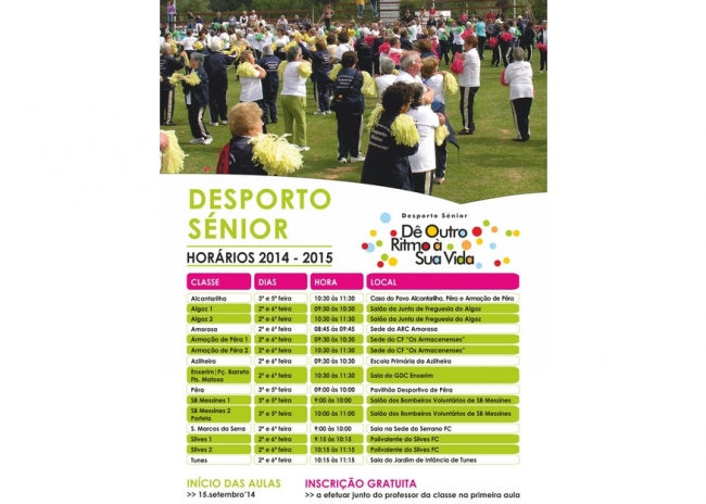 Os horários do Desporto Sénior estão disponíveis no portal do Município de Silves (clique aqui).