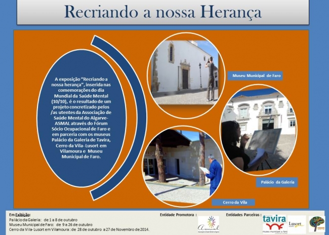 A Casa André Pilarte, espaço expositivo do município de Tavira, abre portas à ASMAL no dia 1 de outubro para uma exposição de trabalhos resultante do projeto “Recriando a nossa Herança”, que estará patente até 8 de outubro de 2014.