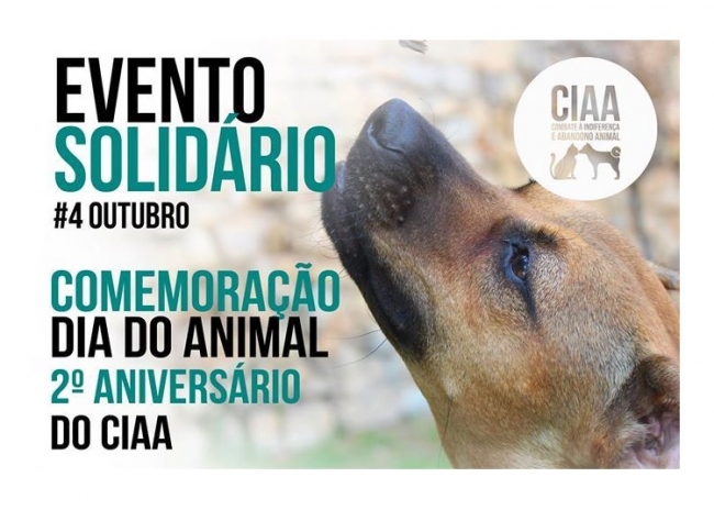 No próximo dia 4 de Outubro, venha comemorar com o CIAA (Combate à Indiferença e Abandono Animal) o Dia do Animal e 2 Anos de trabalho realizado em prol dos animais abandonados e errantes!