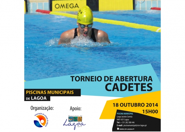 Integrado no programa cultural da autarquia – no ato, representada pelo Vereador O Município de Lagoa em parceria com a Associação de Natação do Algarve irá organizar no próximo dia 18 de outubro, o Torneio de Abertura de Cadetes.