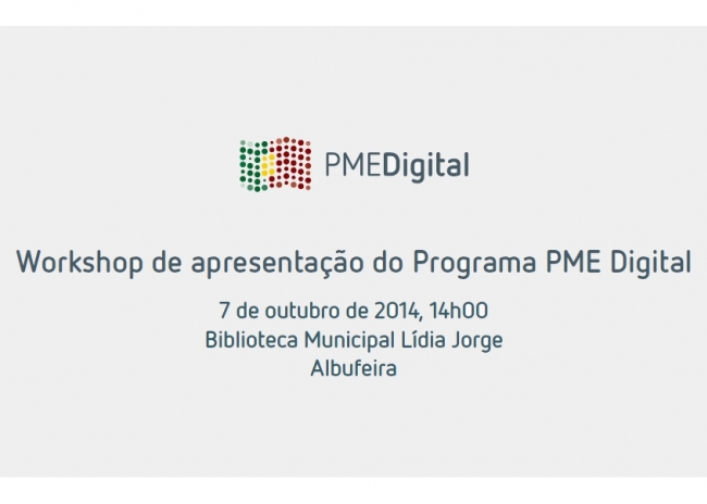 No dia 7 de outubro, a partir das 14h00, realiza-se em Albufeira, na Biblioteca Municipal Lídia Jorge, o Workshop de Apresentação do Programa “PME Digital”, uma iniciativa conjunta da Câmara Municipal de Albufeira, Agência para a Competitividade e Inovação, I.P. (IAPMEI), Associação do Comércio Eletrónico e Publicidade Interativa (ACEPI) e Associação de Comércio e Serviços da Região do Algarve (ACRAL).